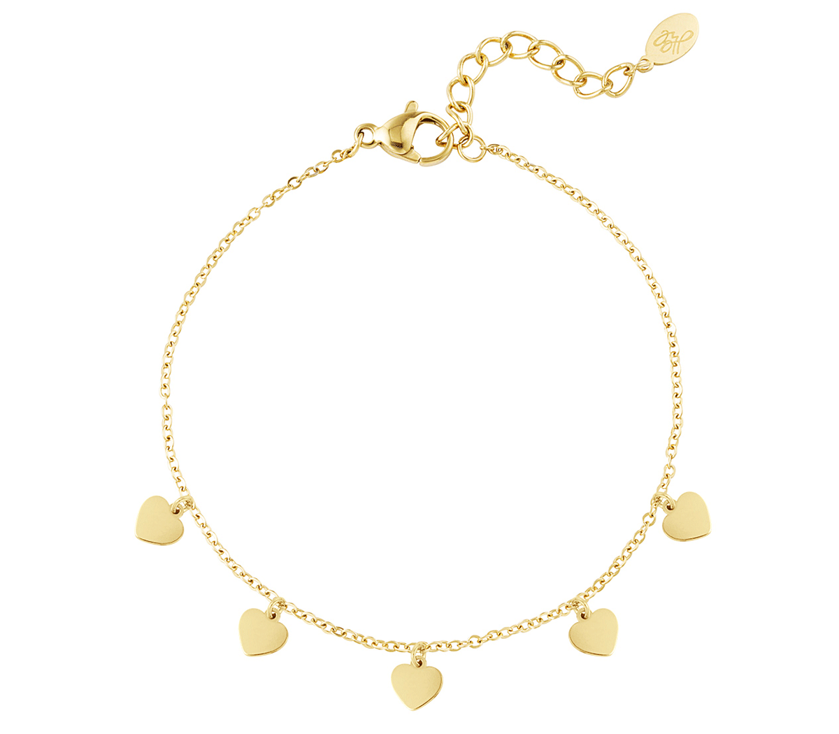 Dieses elegante Armband verzaubert mit fünf kleinen Herzen, die bei jeder Bewegung sanft schimmern. Das feine Design steht für Leichtigkeit, Stil und feminine Eleganz – ein echter Klassiker, der nie aus der Mode kommt.