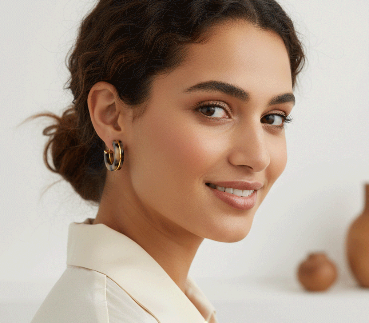 Elegante Creolen aus Kunstharz mit Tortoise-Design und goldenen Akzenten für jeden Anlass